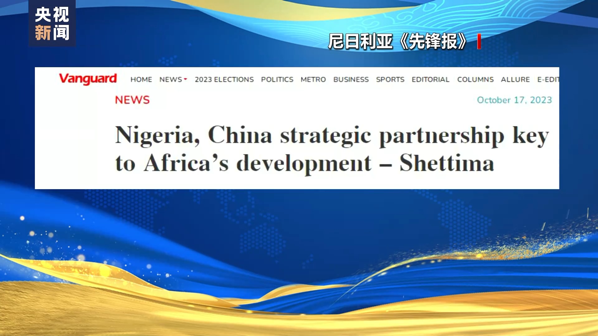 17日,尼日利亚《先锋报》报道了该国副总统谢蒂马出席第三届“一带一路”国际合作高峰论坛期间的表态,谢蒂玛表示,尼日利亚与中国的战略伙伴关系应该继续扩大,尼中友好合作关系将促进非洲发展。谢蒂玛认为,共建“一带一路”倡议是一个伟大而美好的倡议。