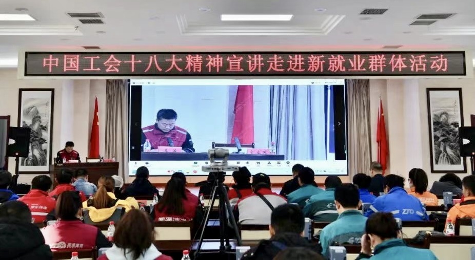 此次宣讲活动是省经贸工会迅速响应甘肃省总工会部署安排,推动中国工会十八大精神在职工群体中走深走实的切实举措。甘肃省邮政管理局、省快递协会有关负责同志、省经贸工会全体干部和来自邮政快递、顺丰速运、中邦快递、圆通速递、申通快递、兰韵速递、极兔快递、京东快递、德邦物流、丹鸟物流等省内10个规模以上快递企业负责人、工会负责人、职工代表、新就业形态劳动者代表等50余人现场聆听宣讲;甘肃省服装鞋帽有限责任公司、甘肃省食品股份有限公司等经贸系统各基层工会,也组织千余名职工线上收看。