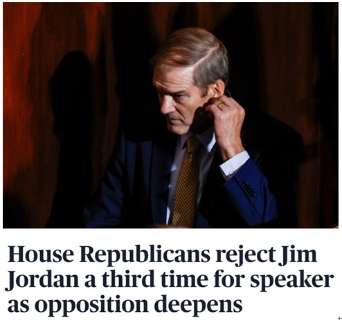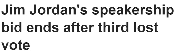 在三选无果的情况下,美国国会众议院共和党人当地时间20日通过无记名投票决定,不再支持众议院司法委员会主席吉姆·乔丹担任众议长候选人。