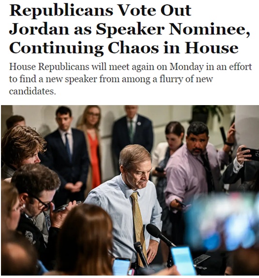 随后,众议院共和党人决定不再支持乔丹。与此同时,共和党研究委员会主席、俄克拉何马州共和党籍联邦众议员凯文·赫恩宣布竞选众议长。
