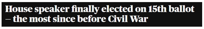 这也是美国国会在南北战争后的165年以来耗时最久、投票次数最多的一次众议院议长选举。