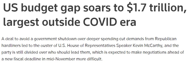就在20日当天,美国财政部发布了截至9月30日的2023财年收支报告。