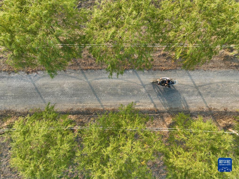 10月24日,韩战桥骑着摩托车在雄安新区孝义河河口湿地巡护。