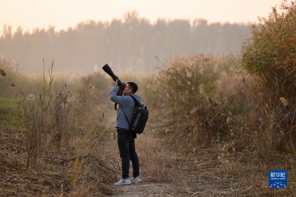 10月24日,韩战桥在雄安新区孝义河河口湿地观察野生鸟类。