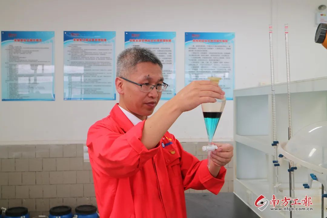 2017年年初,张伟团队遇到了镓锗共萃的萃取剂中毒难题,整个工艺流程严重受阻。“每当遇到这样的瓶颈,张主任总能带领着大家一起去研究攻破,从中我们都能收获成长。”丹霞冶炼厂综合回收车间副主任胡立回忆道,当时张主任每天都守在现场,带领着团队成员一起大量查找文献资料、讨论分析、做实验,在实践中带领大家一起学习进步,这一干就是半个月。