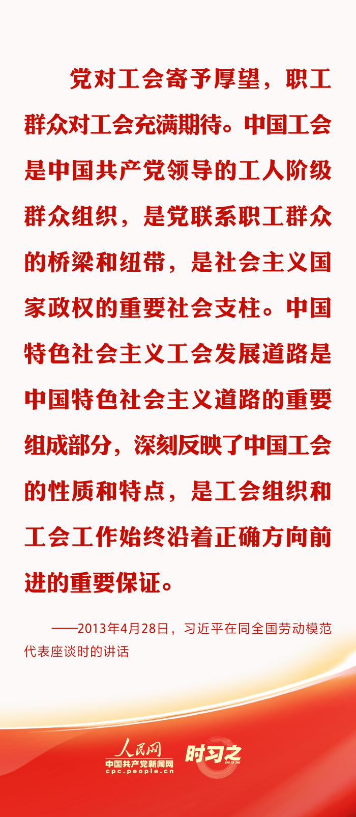 来源:人民日报、《习近平关于工人阶级和工会工作论述摘编》