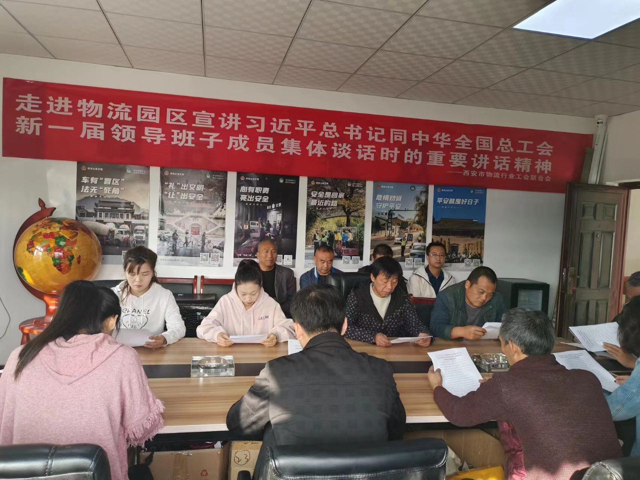 当日下午,西安市物流行业工会联合会干部、各物流运输企业工会主席、党员货车司机、“最美货车司机”等20余人走进西安正广通物流园、西安聚盟公路港、明亨物流园等10多家物流园区,分发中国工会十八大相关文件资料,组织广大物流运输企业和货车司机进行中国工会十八大精神的学习宣传贯彻。