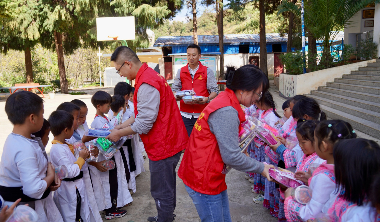 当天,禄劝县翠华镇汤郎箐小学的41个苗族彝族孩子们如约收到来自中天八建志愿者带来的爱心大礼包,铅笔、文具盒、练习本、彩笔每一样精心挑选的学习用具,只为能为孩子们日常学习带来一点鼓励。