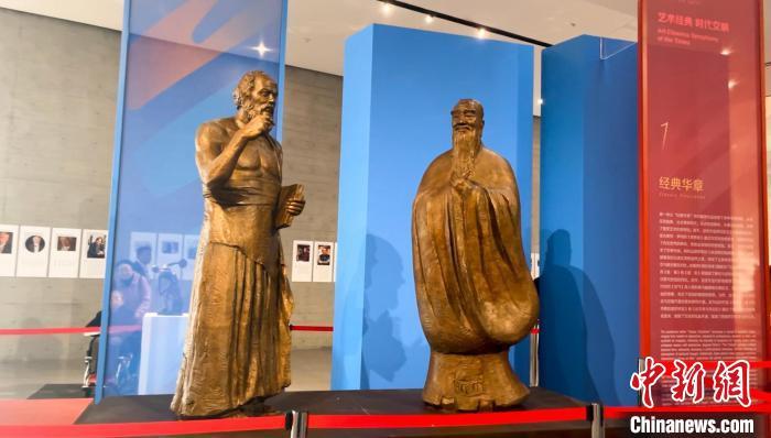 走进艺术馆,首先映入眼帘的是孔子和苏格拉底的“对话”,这是中国雕塑家吴为山的作品。这样跨越时空的“对话”,正是此次展览的一个缩影。
