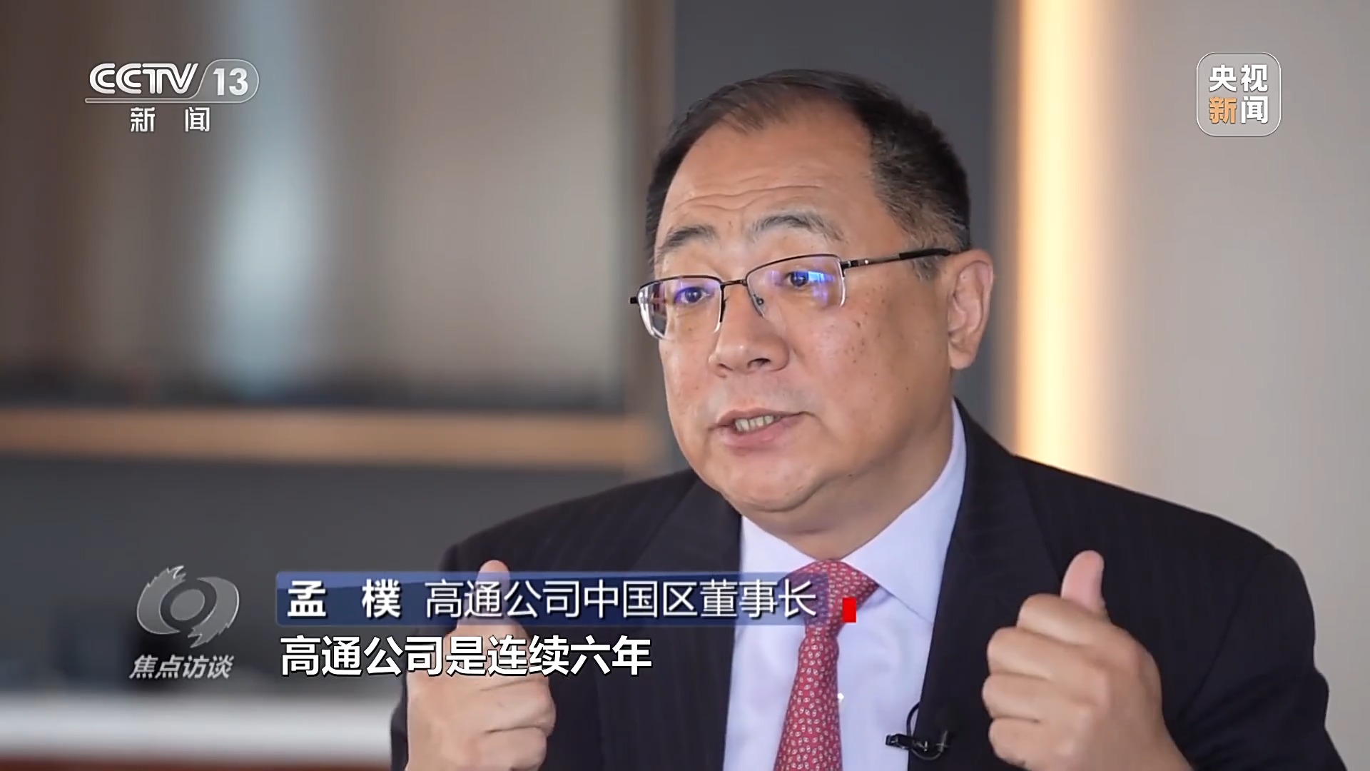 高通公司中国区董事长 孟樸:连续六年参加的企业也就两百家,所以我们很有幸,也很自豪,高通公司是连续六年参加进博会的这两百家企业之一。我觉得说明我们对中国市场有信心,对和中国合作伙伴的合作有信心。也相信我们的技术通过我们和中国企业的合作能够造福于社会,能够为社会大众带来越来越多好的产品和应用体验。