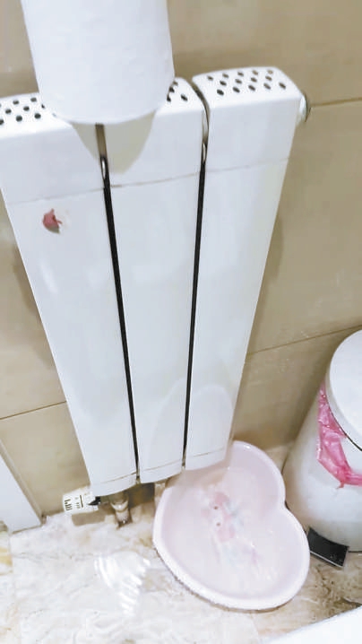 朱女士发现厕所的暖气片下端水流如注,一家人赶紧拿盆接水,不到5分钟就得换盆。一边接水,她一边急着给供热单位打电话,但却一直占线。虽然厕所这组暖气片下方有个旋钮,转动以后可以阻隔掉这组暖气片,但怎么试也不好使,一家人手忙脚乱。朱女士所住的这栋楼属于分户供热,总阀门不在家里,而在楼道的管井里。打开管井的门,里头的阀门可真不少,“这我哪儿敢动啊,要是关错了不就把别人家的暖气给停了。”