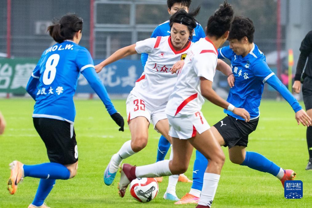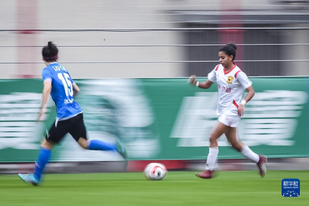 11月15日,长春大众卓越队球员赵莹莹(右一)在比赛中射门。新华社记者 伍志尊 摄
