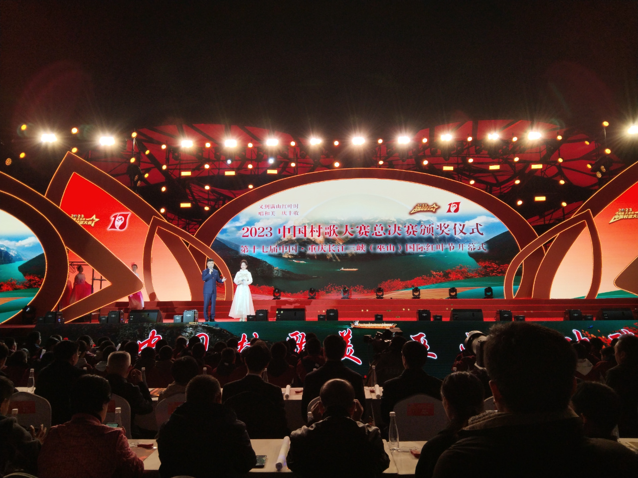 11月18日晚,2023中国村歌大赛总决赛颁奖仪式暨第十七届中国·重庆长江三峡(巫山)国际红叶节开幕式,在重庆市巫山县成功举办。农业农村部党组成员黄艳,重庆市委常委、宣传部长姜辉,重庆市人大常委会副主任、市总工会主席陈元春、重庆市人民政府副市长郑向东出席活动。