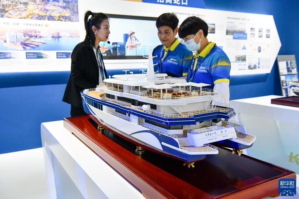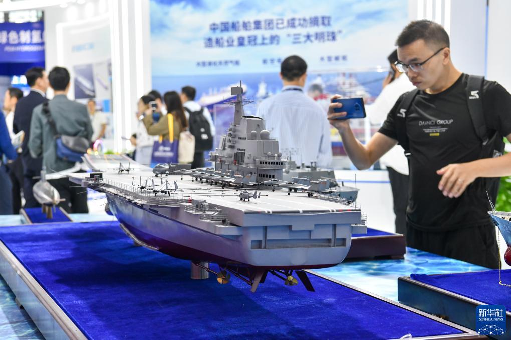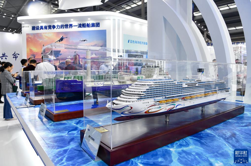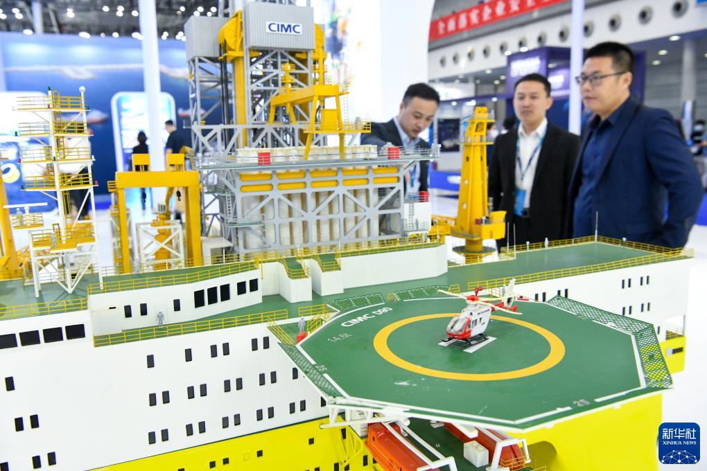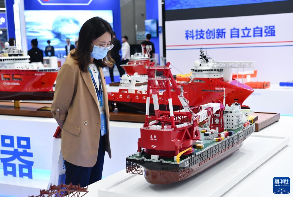 造船工业“皇冠上的三颗明珠”——航空母舰、大型液化天然气(LNG)运输船、大型邮轮,“蓝鲸1号”钻井平台,“深海一号”能源站,新一代波浪滑翔机……记者在展会现场看到,一系列高端装备的模型和高新技术研发成果,吸引众多参观者的目光。此外,海上卫星发射、水下传感、智能航行等新兴技术,深海钻井机器人、海上风电发电机组等高科技产品,以及船舶自动化、绿色港口低碳智能解决方案等纷纷亮相。