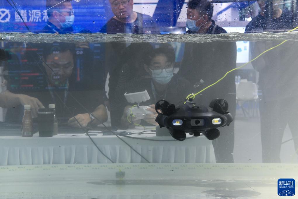 11月23日,观众在展览现场了解水下机器人。新华社记者 梁旭 摄