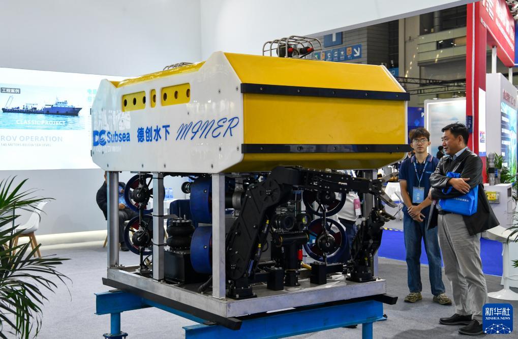 11月23日,观众在展览现场了解大型作业级水下机器人。新华社记者 梁旭 摄