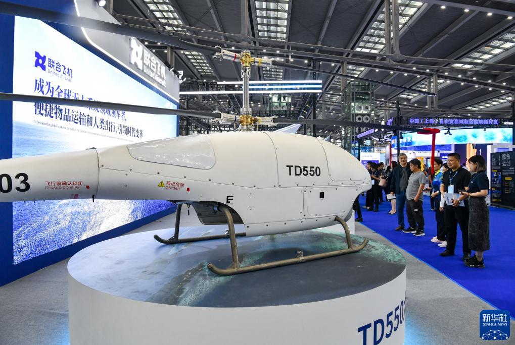 11月23日,观众在展览现场了解一款无人直升机。新华社记者 梁旭 摄