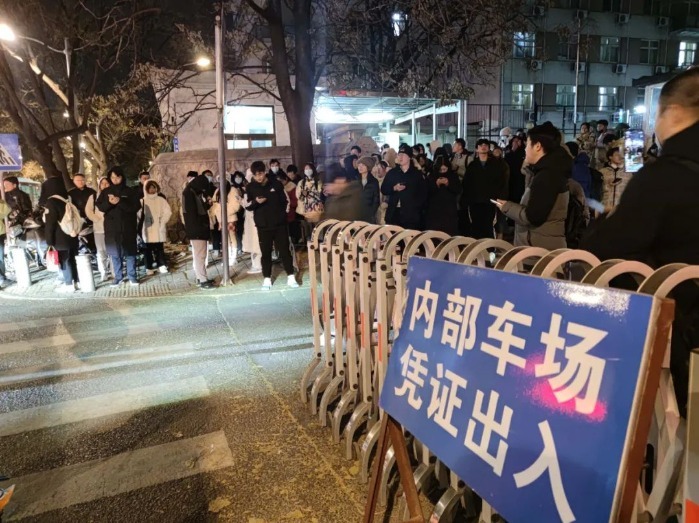 图片早早在北京大学西南门等候的人群。拍摄/陈威敬