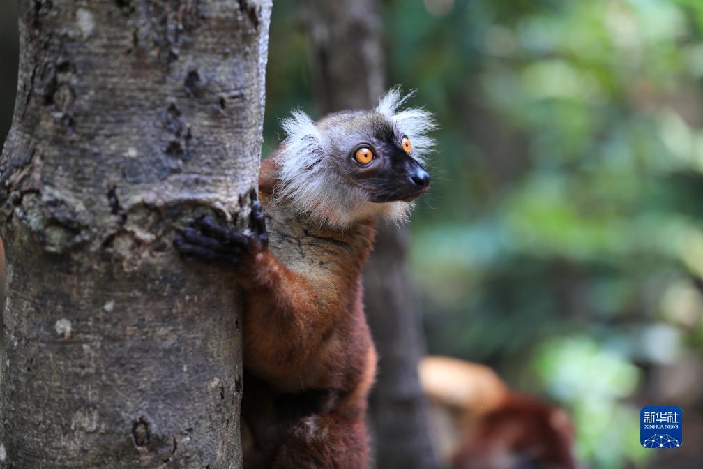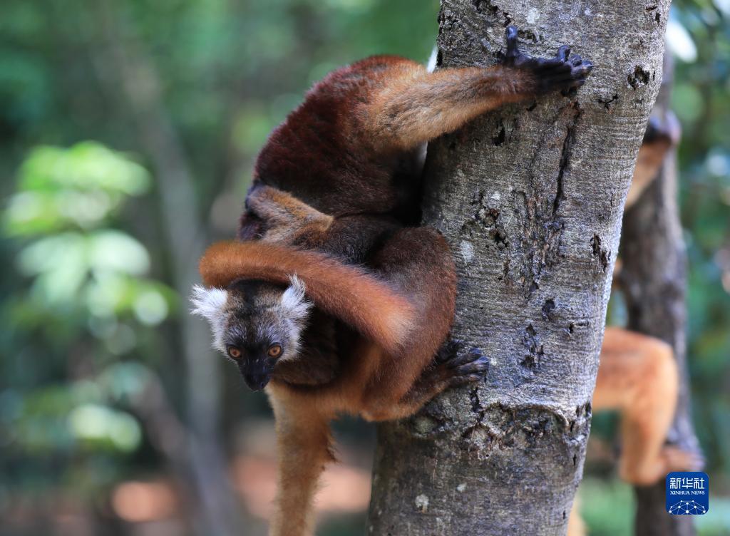 这是11月26日在马达加斯加安达西贝私人保护区拍摄的红领狐猴。