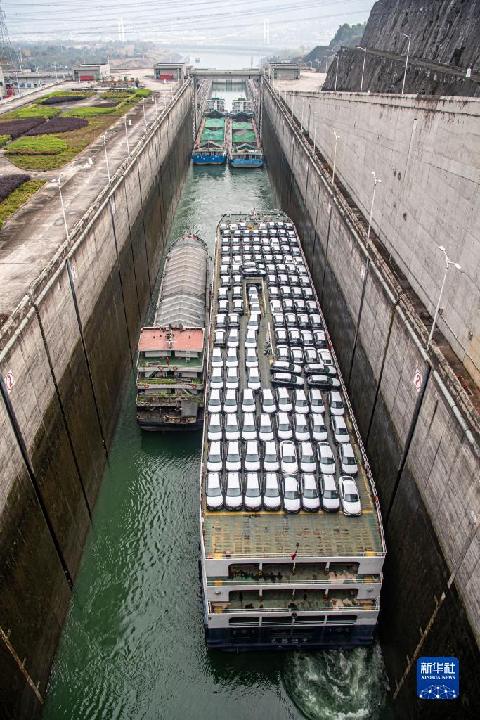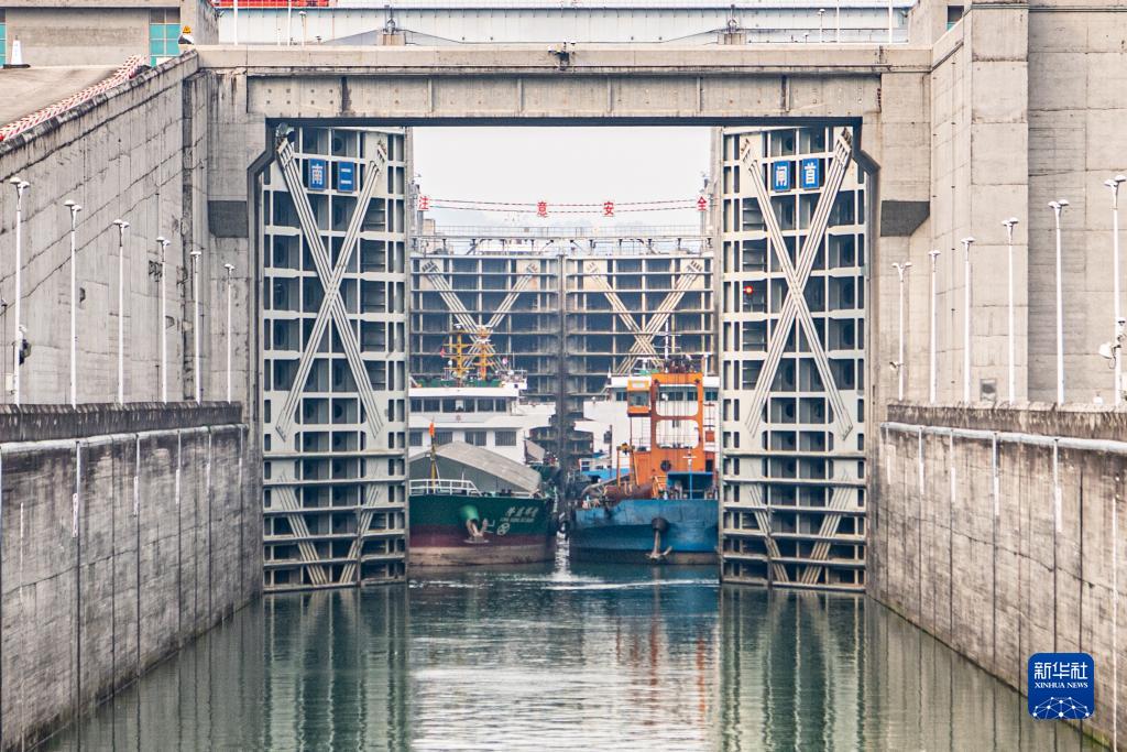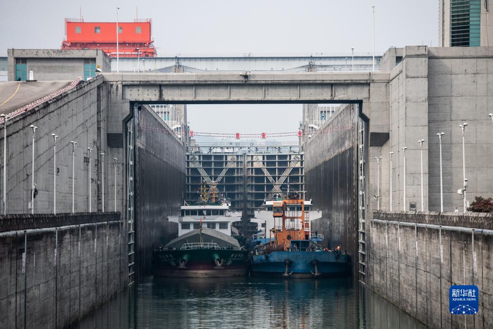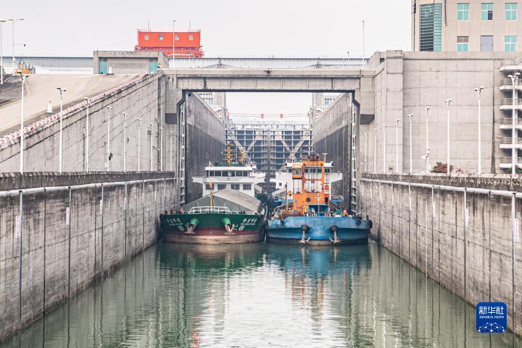 12月1日,船舶有序通过三峡双线五级船闸。新华社记者 唐奕 摄