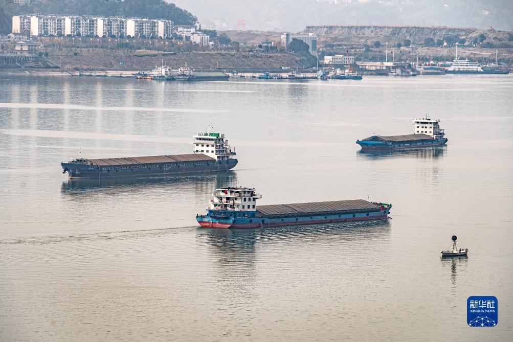 12月1日,船舶行驶在三峡大坝附近水域。新华社记者 唐奕 摄