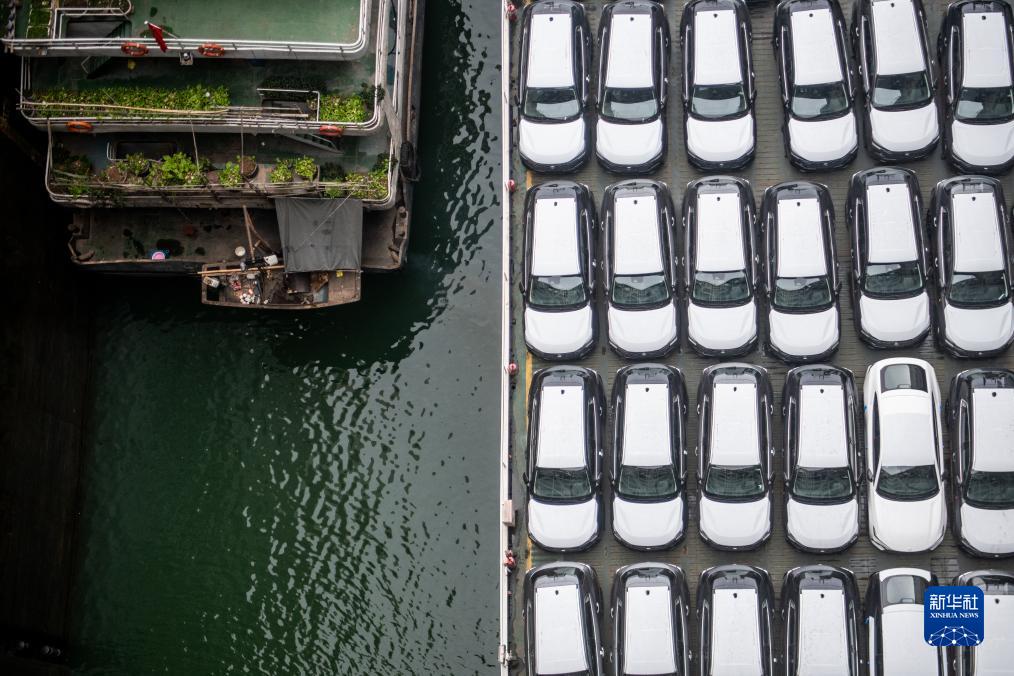 12月1日,船舶有序通过三峡双线五级船闸(无人机照片)。新华社记者 伍志尊 摄