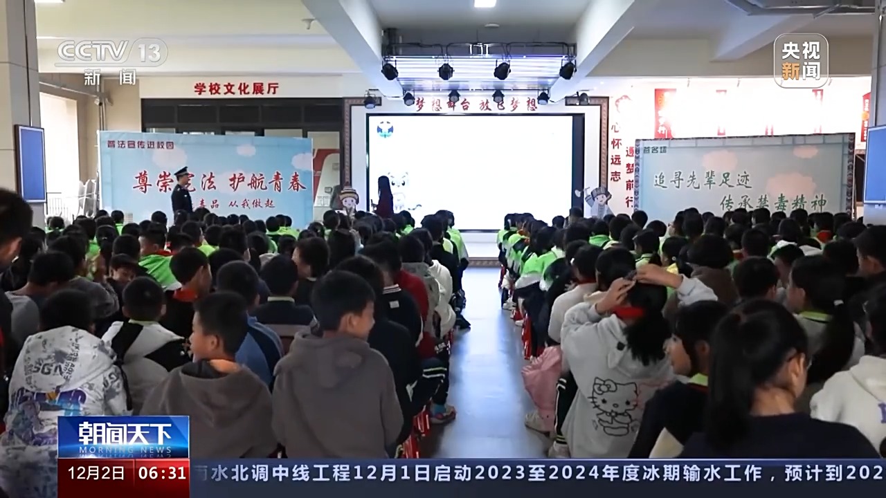 在广东连山壮族瑶族自治县第一小学,围绕宪法关于未成年人权益保护,县公安局的民警为同学们开展以“尊崇宪法,护航青春”为主题的普法宣传教育活动。课堂上,授课民警还特别结合具体案例,重点教育孩子们预防网络电信诈骗,善于识破新型毒品的伪装。