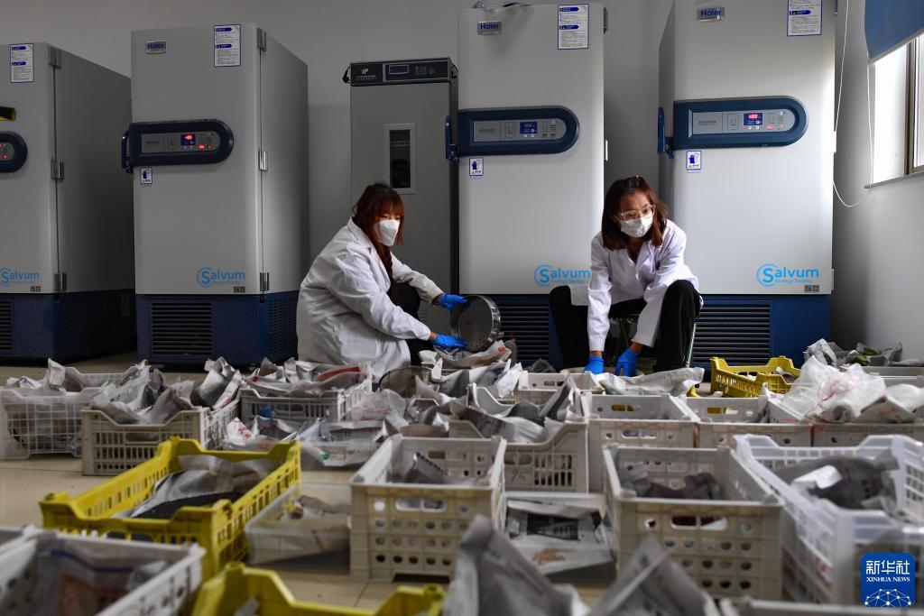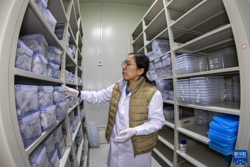 科研人员在整理种子低温保存库中储存的各种种子(11月30日摄)。