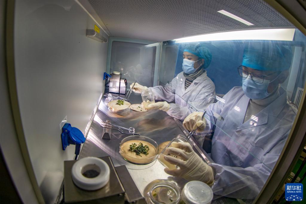 科研人员在进行植物组织培养和接种工作(11月30日摄)。