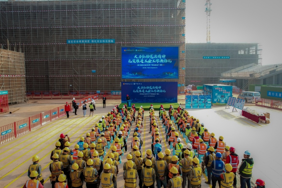 中工网讯 12月4日上午,由四川省总工会主办的以“大力弘扬宪法精神,扎实推进工会工作法治化”为主题的“12·4”国家宪法日暨四川省总工会2023年“宪法进企业”普法宣传活动在中建科工集团有限公司西部大区清华附中天府学校项目开展,现场吸引了100余名职工参与。