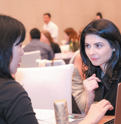 2023年6月5日,巴西企业家雷塔娜·托马塞利(右)向中国投资者介绍创业情况。受访者供图