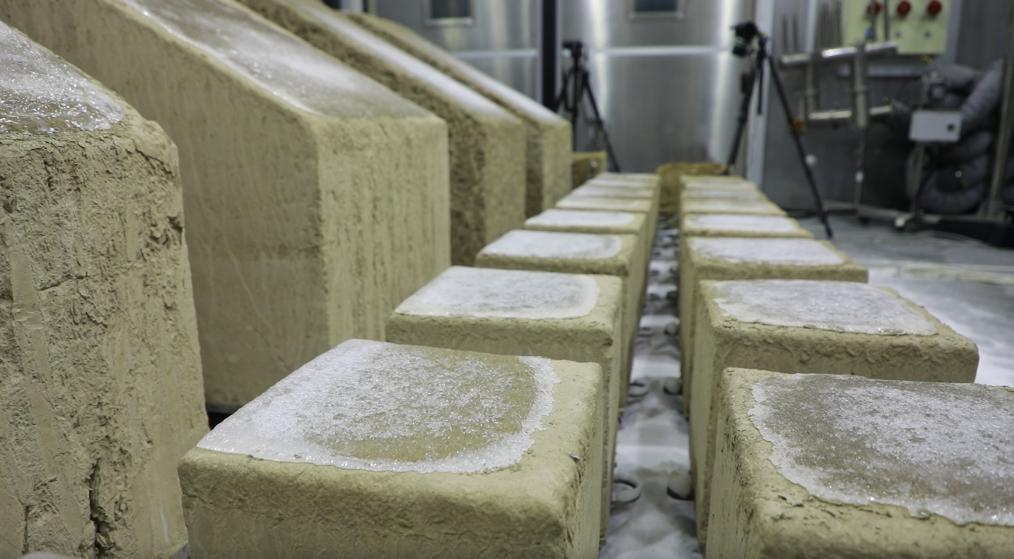 这是9月11日在敦煌研究院国家古代壁画与土遗址保护多场耦合环境模拟实验室冬季仓拍摄的正在试验中的土遗址监测样品。新华社记者 张智敏 摄