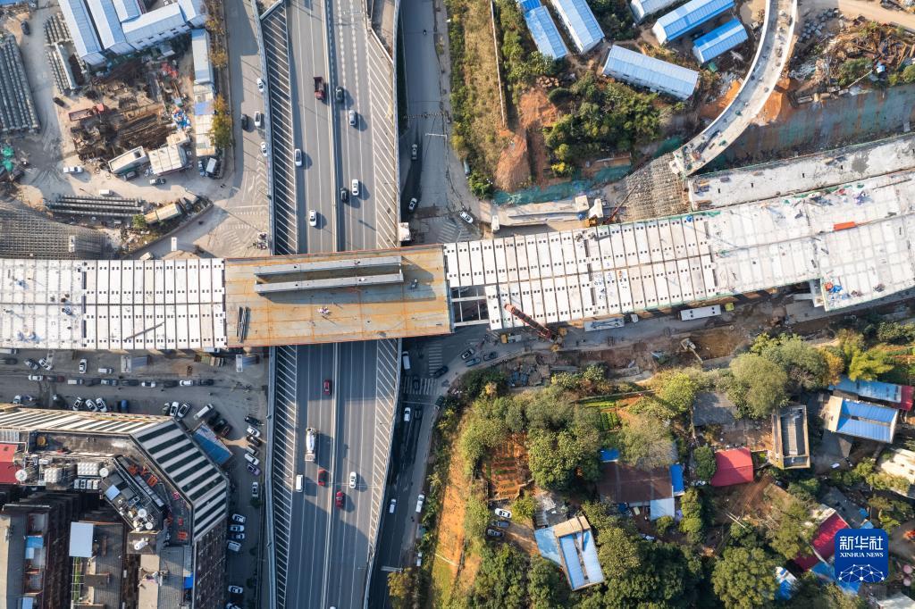 这是12月4日拍摄的长沙万家丽路快速化改造北延线工程施工现场(无人机照片)。新华社记者 陈思汗 摄