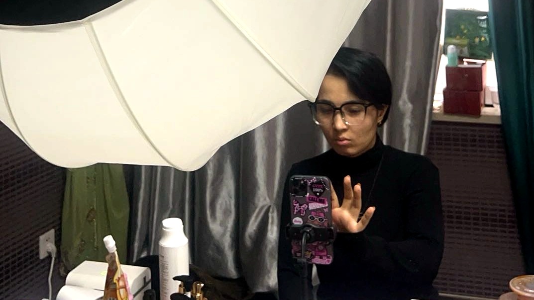 图为沙依巴克区炉院街街道炉院北街社区居民在线上平台销售商品。