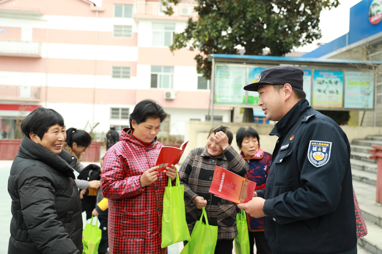 12月4日,安徽省舒城县公安局河棚派出所组织民警辅警走进辖区街道、村庄开展宪法宣传活动。(本报通讯员 沈业忠 摄)
