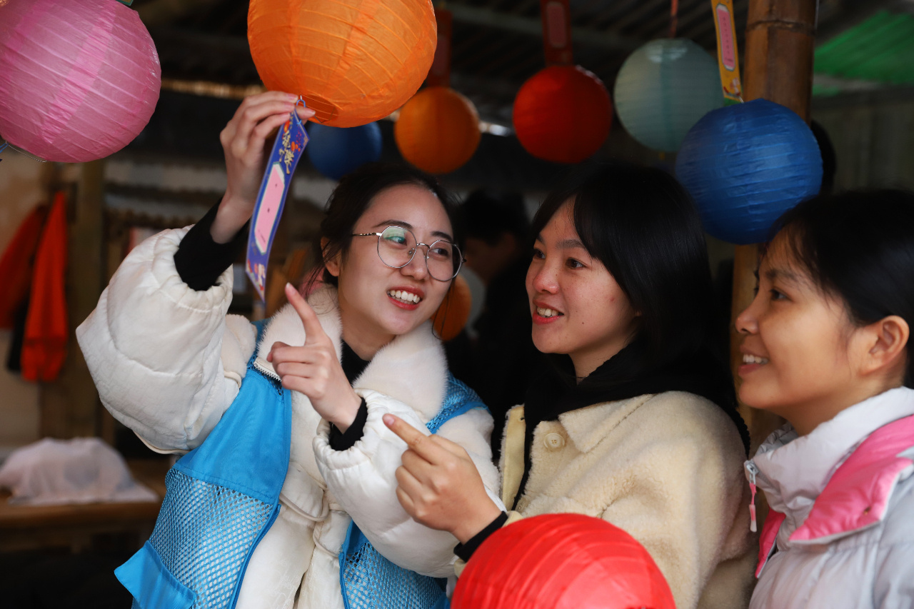 12月4日,浙江省台州市路桥区路北街道马铺社区的网格员和群众猜灯谜互动,向群众宣传宪法和法治知识。(本报通讯员 蒋友青 摄)