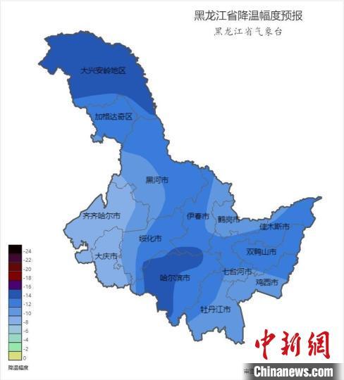 黑龙江省2023年12月5日夜间至7日降温幅度预报图。黑龙江省气象局供图
