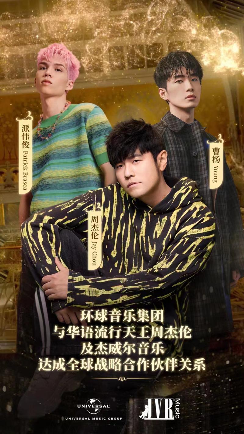 12月6日,环球音乐宣布,与周杰伦及其经纪公司杰威尔音乐(JVR Music)达成重磅战略合作伙伴关系,确立环球音乐集团将获得周杰伦经典曲库及未来新发行作品的全球发行权利,同时还包括两位杰威尔音乐旗下的潜力新人派伟俊和曹杨的加盟。