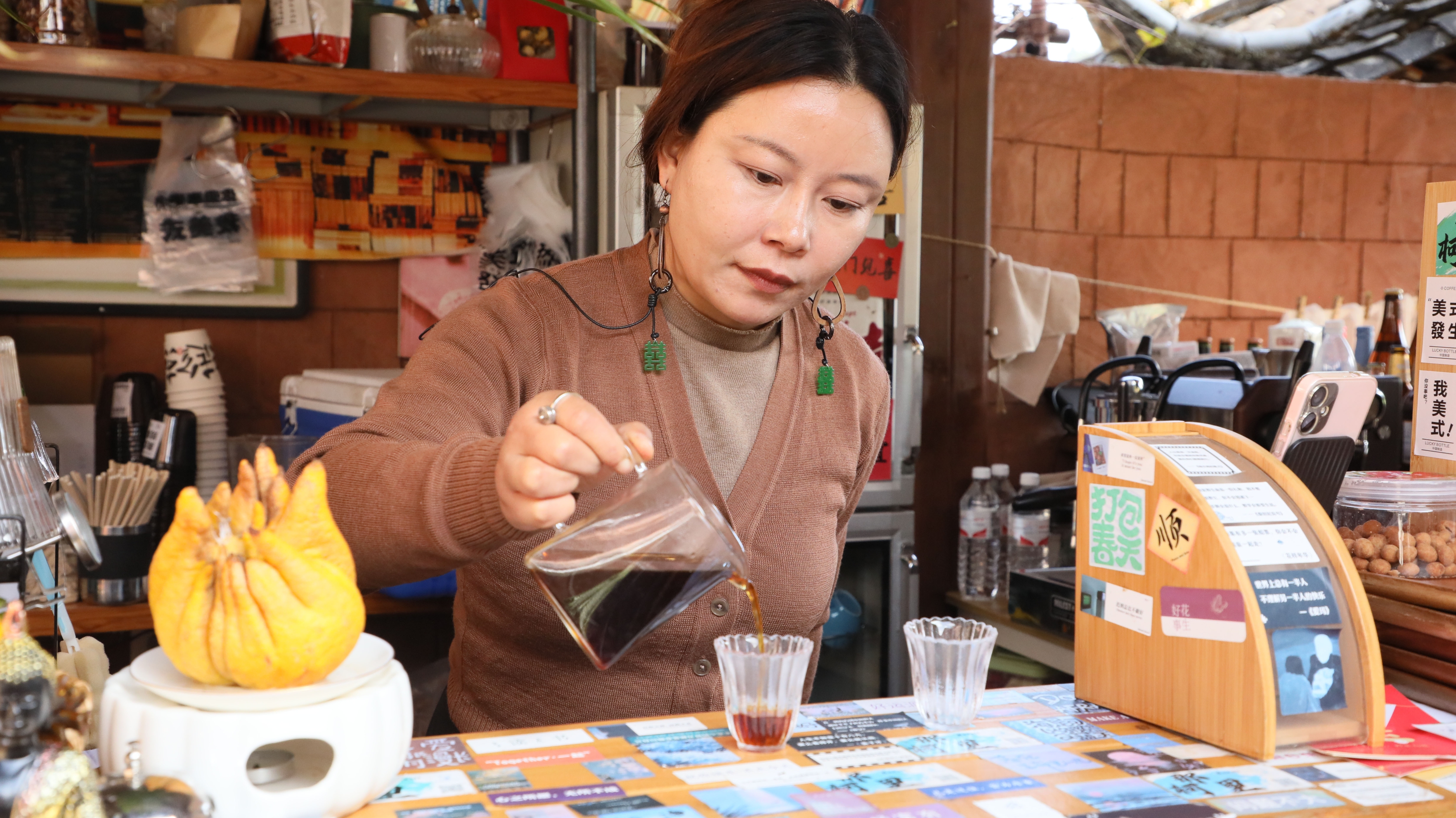 2023年11月29日商家在云南宁洱县那柯里茶马古道小镇手工研磨冲泡好咖啡后售卖给游客。新华社记者 胡超 摄