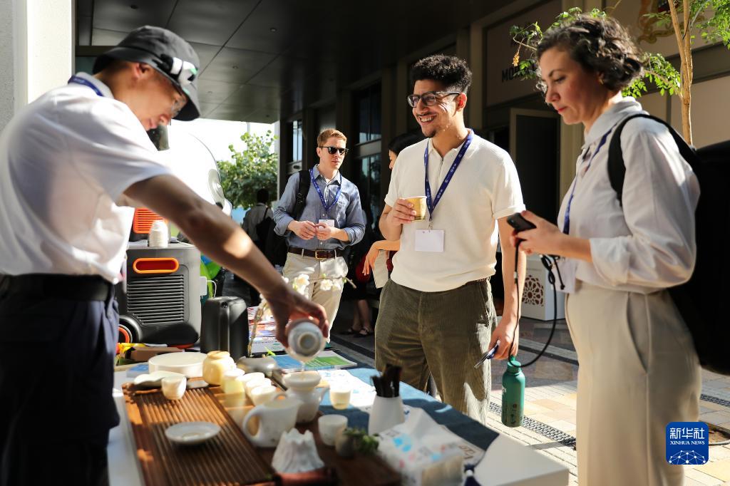 12月6日,在联合国气候变化迪拜大会中国角,参会者品尝中国茶。新华社记者 王东震 摄
