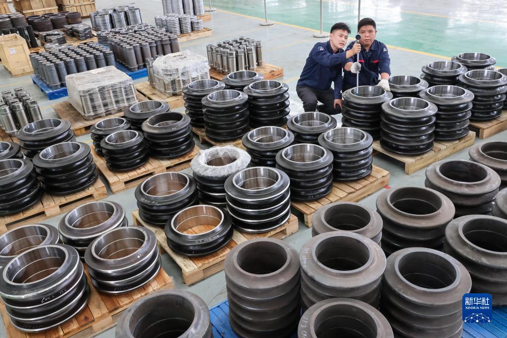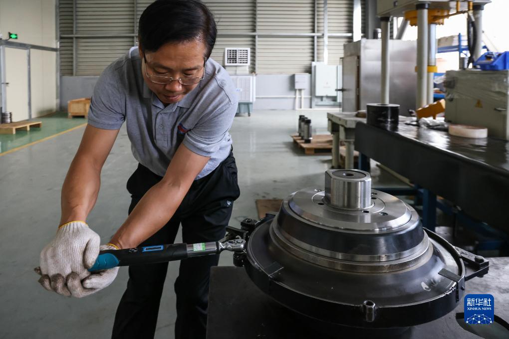 12月6日,中铁建华南高科的技术员进行盾构机刀圈成品检测。新华社记者 刘大伟 摄