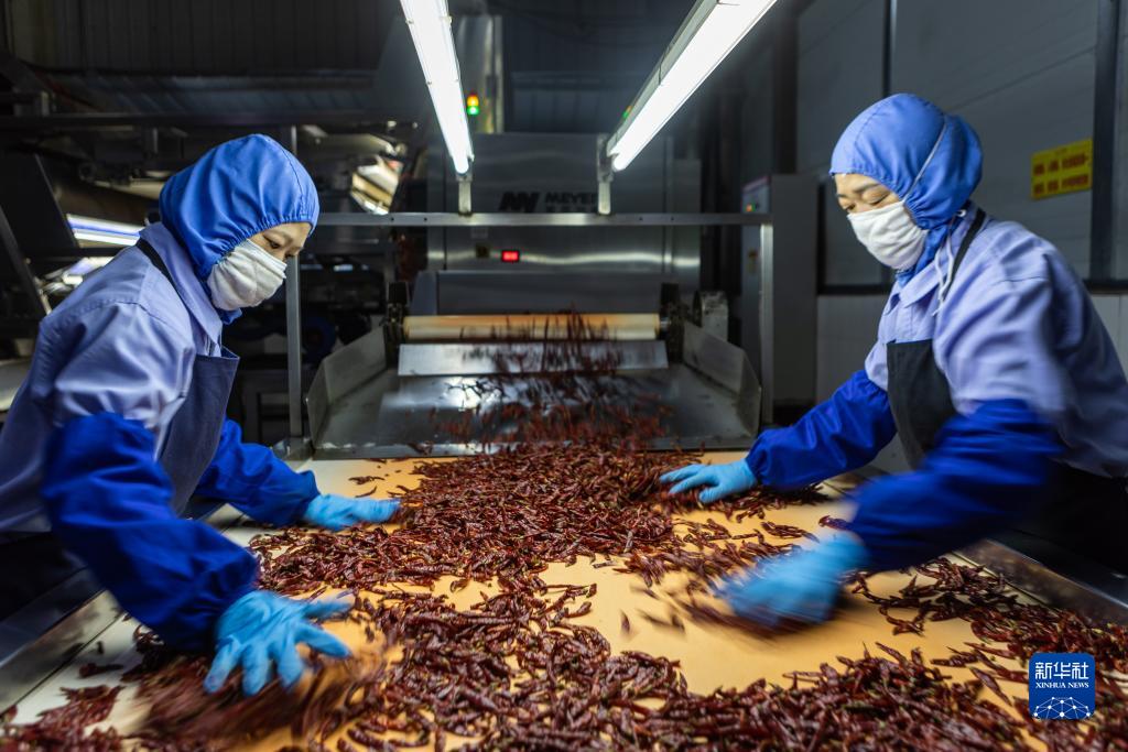 12月5日,在重庆市合川区的重庆梅香园实业集团有限公司,工人们在辣椒生产车间作业。新华社记者 储加音 摄
