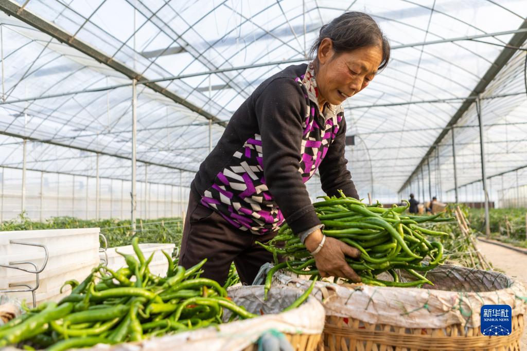 12月5日,在重庆市合川区太和镇,村民在一个蔬菜种植基地整理采收的二荆条辣椒。新华社记者 储加音 摄