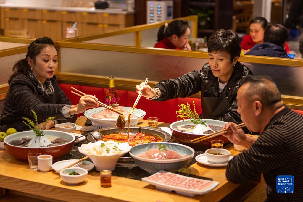 12月5日,顾客在重庆市合川区的一家火锅店用餐。新华社记者 储加音 摄
