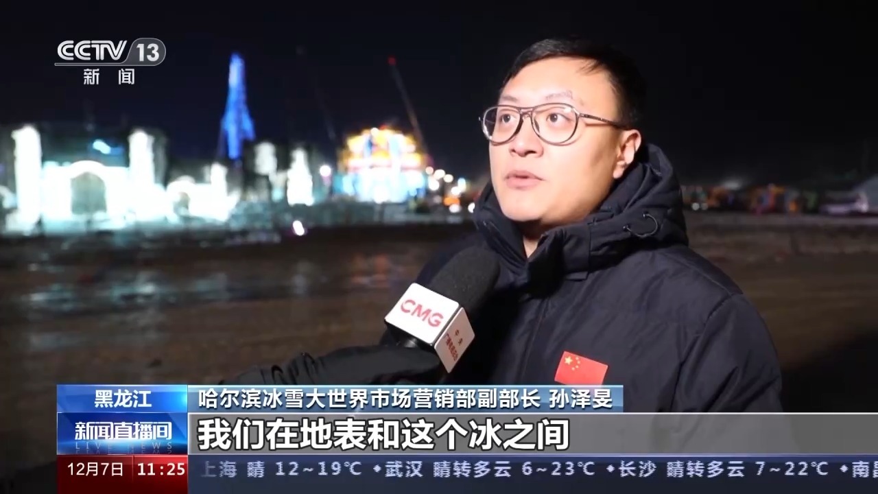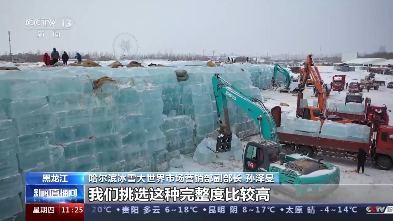 哈尔滨冰雪大世界市场营销部副部长 孙泽旻:像我们存冰是在每年冰雪大世界正式建设结束之后,这时候冰会达到60厘米以上,我们挑选这种完整度比较高、厚度比较厚的冰进行存储存放。