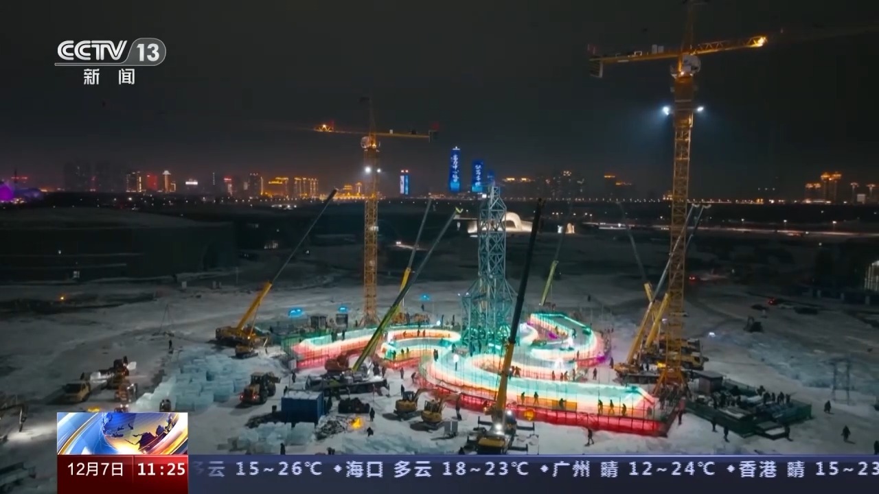 目前,哈尔滨冰雪大世界正在如火如荼的建设中,预计本月中旬将开门迎客。