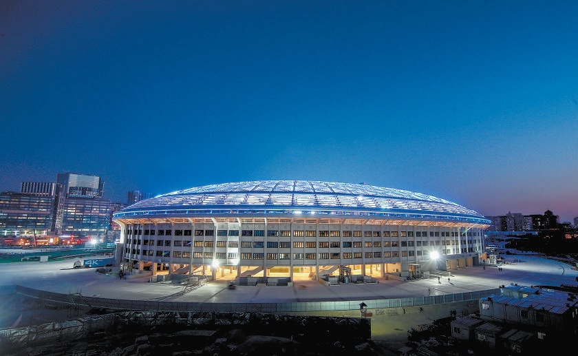 2023年,升级后的“新工体”罩棚外观照明色彩缤纷,点亮城市夜空。