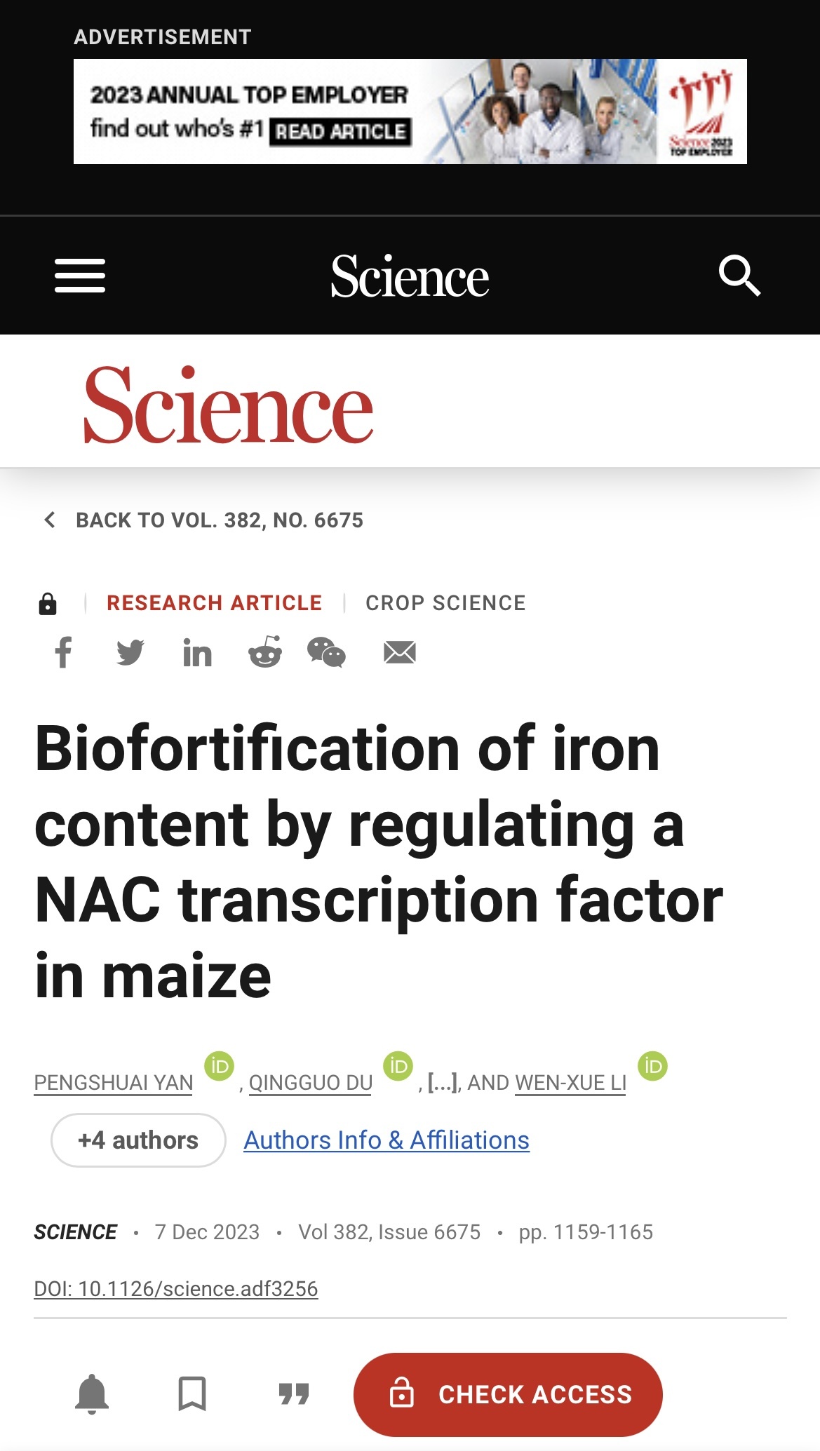 12月8日,相关研究成果以研究长文的形式在线发表于《科学(Science)》。