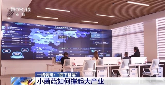 如今像这样“棚上发电、棚下种菇”的光伏菇棚基地,已在古田多点开花。点开手机,新菇棚的湿度、温度等动态已连入古田县食用菌“数字大脑”运营中心,小小的菌菇也跨越了田间,飞向云端。