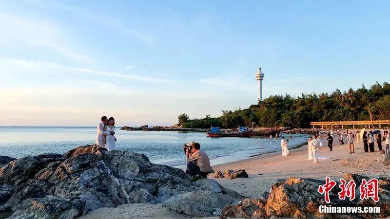 图为文昌市木兰湾美丽滨海风光吸引不少新人在此拍摄婚纱照。凌楠 摄